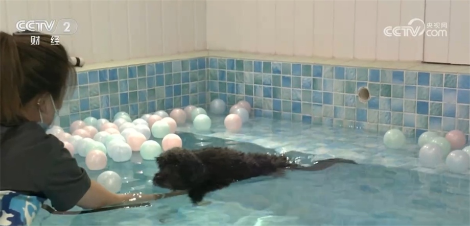 有著一身黑毛的小狗“煤球”,在這個炎熱的夏天首次嘗試了游泳。在工作人員的引導(dǎo)下,它終于鼓起勇氣脫掉泳衣,成功下水。
