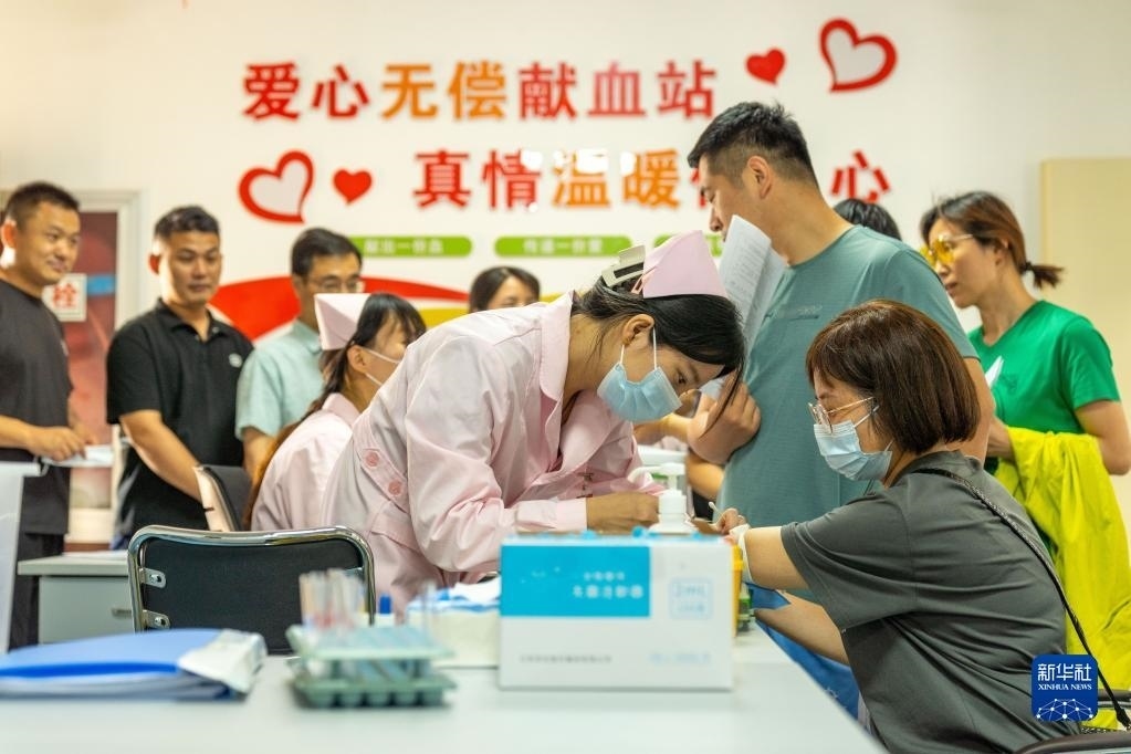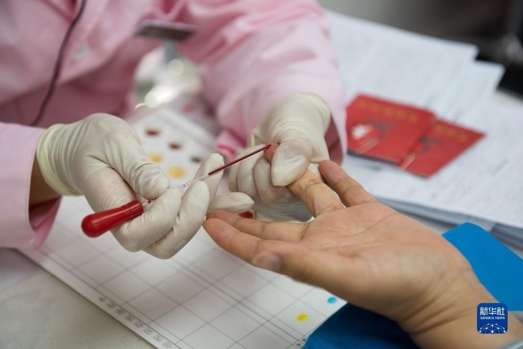 6月14日,市民在安徽省合肥市肥東縣血站無償獻血室進行獻血前檢驗。
