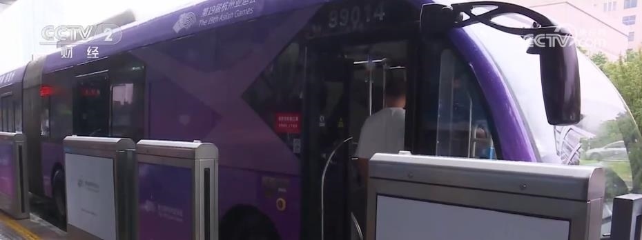 在溫州,40輛亞運宣傳車投入使用,這是在快速公交系統(tǒng)線路上運營的18米長的亞運主題車。