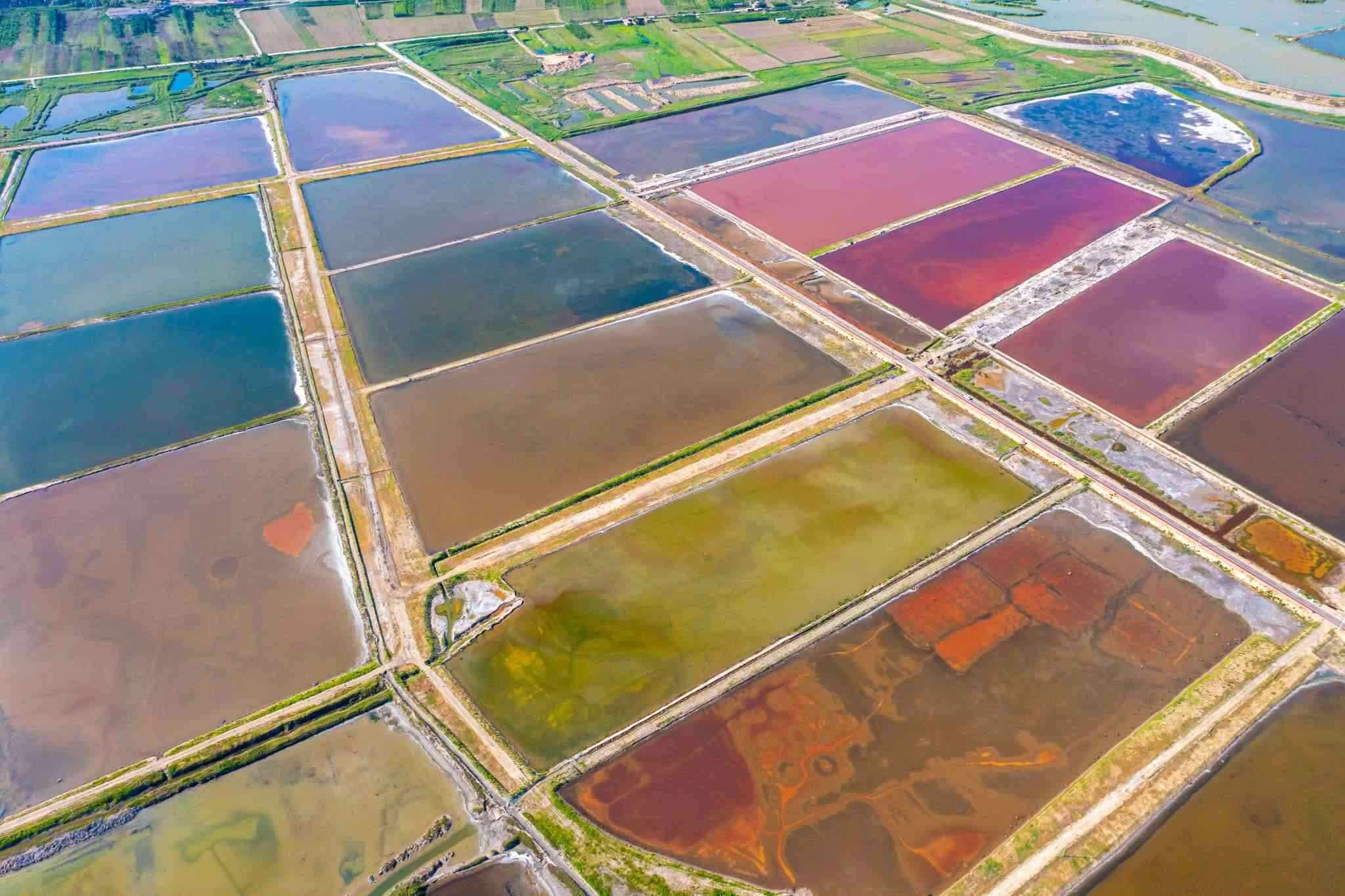 山西運(yùn)城:七彩鹽湖如大地調(diào)色板
