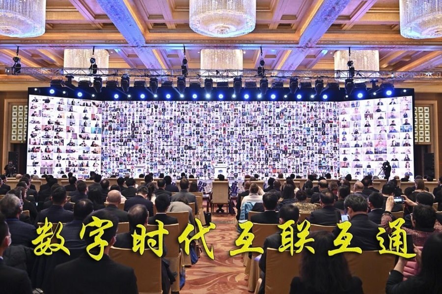 在北京舉行的世界數(shù)字教育大會(huì)上,全球萬名師生云合奏合唱(2023年2月13日攝)。世界數(shù)字教育大會(huì)以“數(shù)字變革與教育未來”為主題,超過130個(gè)國(guó)家和地區(qū)的代表參會(huì)。