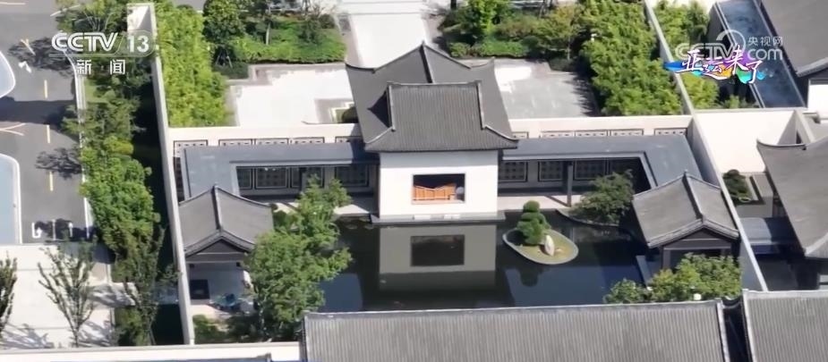 坡屋頂、灰瓦白墻,這里是金華的亞運分村。這個村的建設非常具有金華特色,各個建筑的外形吸取了江南造園精髓,灰瓦白墻、小橋流水,各式綠植樹木沿著水系有序分布。