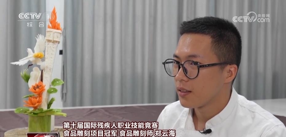 第十屆國際殘疾人職業(yè)技能競賽食品雕刻項目冠軍 食品雕刻師 鄭云海:接下來,以工作室為起點,讓更多人認識食品雕刻,用自己的力量帶動更多的人去實現技能成才、技能報國。