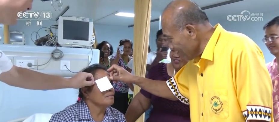 任務(wù)過程中,共有37名患者完成眼疾手術(shù)重見光明。這是一名受白內(nèi)障困擾接近10年的基里巴斯居民,聽到“和平方舟”能開展白內(nèi)障手術(shù)的消息,他在家人的陪伴下第一時(shí)間來到“和平方舟”眼科診室。中國醫(yī)生為其制定了全流程、精準(zhǔn)化的診療方案,讓她重見光明。