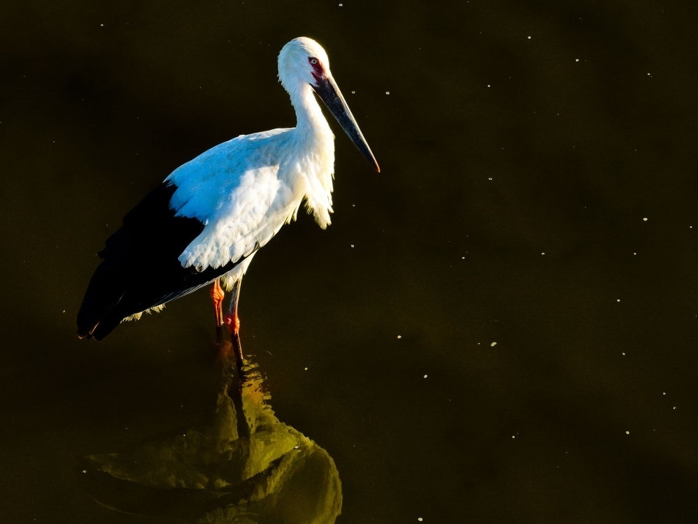 在鹽城東臺條子泥濕地拍攝的東方白鸛(9月1日攝)。