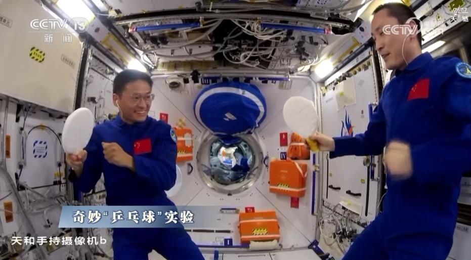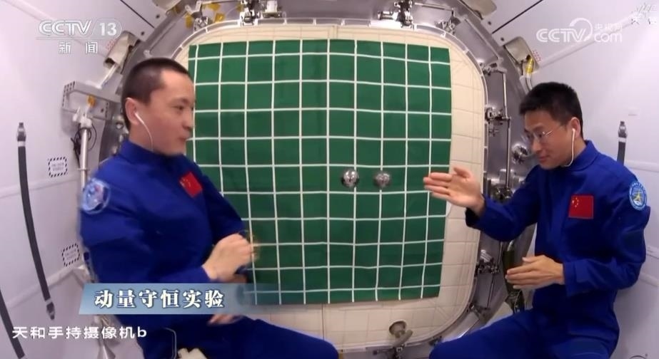 地面上的火苗到了太空,變成了小絨球;太空“乒乓球賽”專用水球,竟被一口吞掉,航天員真是一滴水也不浪費(fèi);大小鋼球?qū)ε?,動量守恒的定律?fù)習(xí)到了;還有網(wǎng)友說,我女兒說了,她長大也想當(dāng)航天員。