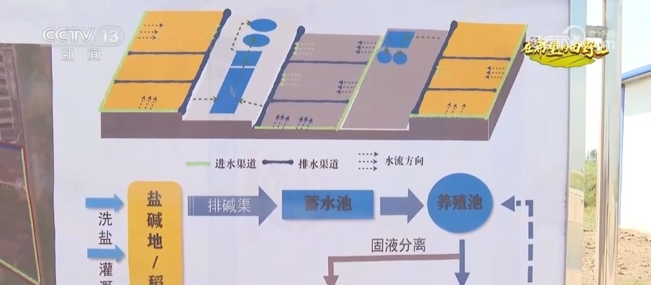王永利說(shuō),通過(guò)淡水灌溉會(huì)將鹽堿田里的鹽和堿排出地塊,排出的鹽堿水通過(guò)一道道排水溝循環(huán)到蓄水池,最后被輸送到養(yǎng)殖池里養(yǎng)魚,養(yǎng)魚產(chǎn)生的排泄物經(jīng)過(guò)過(guò)濾后回輸?shù)剿咎?,這樣的漁農(nóng)綜合利用模式讓鹽堿地不斷變好。
