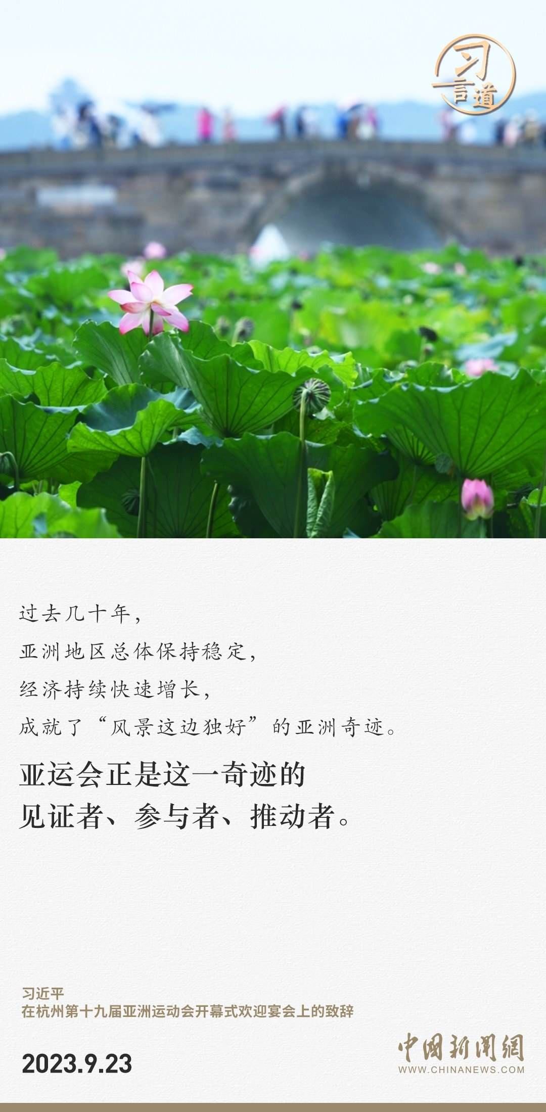9月23日中午,國家主席習(xí)近平和夫人彭麗媛在浙江省杭州市西子賓館舉行宴會,歡迎來華出席杭州第19屆亞洲運(yùn)動會開幕式的國際貴賓。習(xí)近平發(fā)表致辭指出——