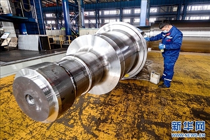 在位于黑龍江省齊齊哈爾市的中國一重生產(chǎn)車間內(nèi),工人正在進行生產(chǎn)作業(yè)。