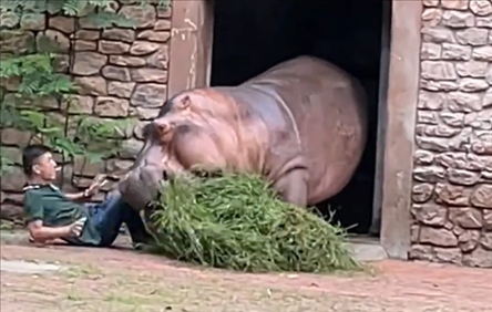·長(zhǎng)沙生態(tài)動(dòng)物園回應(yīng)“河馬攻擊飼養(yǎng)員”:兩只河馬打架,飼養(yǎng)員勸架不小心摔倒。