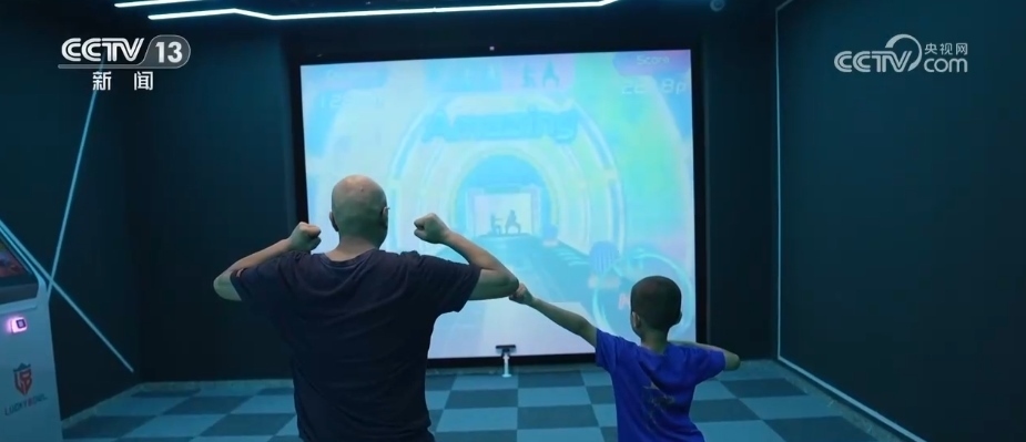 在村里的良渚運動館,大人、孩子沉浸在虛擬世界里體驗滑雪、沖浪、賽車、網(wǎng)球等運動。數(shù)字化的運動館已經(jīng)走進(jìn)了鄉(xiāng)村,雖然這里剛剛試運行1個月,但是特別受周邊村民的喜歡。最多的一天接待人次達(dá)到了800多人次,這個場館點燃了很多人的運動熱情。