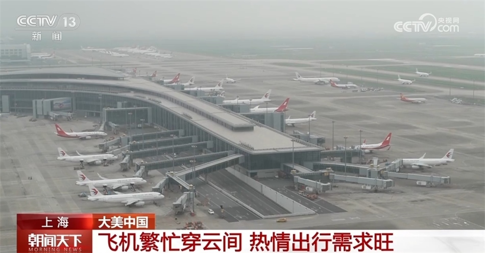 現(xiàn)在您看到的是上海浦東國際機場,每天早上的8點到9點是航班進出港高峰,平均約42秒就有一個航班起降。今年中秋、國慶“雙節(jié)”疊加,出行需求旺盛,8天假期,預計浦東機場航班量1.1萬架次,客流量158.5萬人次。