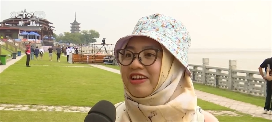 來自印度尼西亞的記者南妮·尤娜今年第一次在中國過中秋,雖然不能和家人團聚,但是能夠以觀潮的方式度過中秋,南妮·尤娜覺得特別有意義。