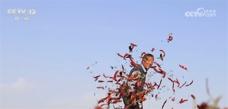 跟隨鏡頭,我們來到了新疆巴州和碩縣廣袤的戈壁灘上。眼下,50多萬畝紅辣椒進(jìn)入全面采收晾曬季,放眼望去,一片片“紅色地毯”散發(fā)著熱辣的氣息。遍地的紅辣椒被有序鋪開,村民們穿梭其中,透著豐收的喜悅。當(dāng)?shù)剞r(nóng)業(yè)部門測(cè)算,今年當(dāng)?shù)乩苯樊a(chǎn)量可達(dá)140萬噸以上,辣椒采收及晾曬工作將持續(xù)至11月前后。