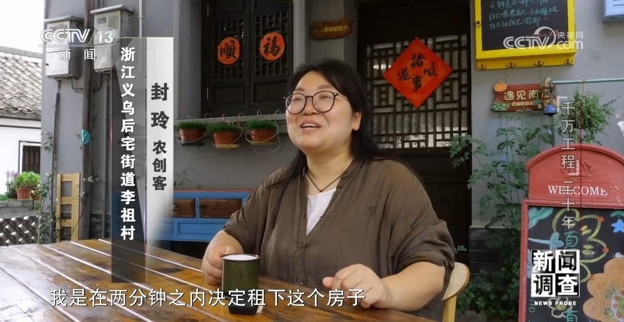 浙江義烏后宅街道李祖村農(nóng)創(chuàng)客 封玲:我是在兩分鐘之內(nèi)決定租下這個房子。當(dāng)時是沒有看到里面長什么樣子,然后我就在那個下面看到這個樓梯,看到這種老房子,然后看到門口的梔子花樹,我就說就它了。