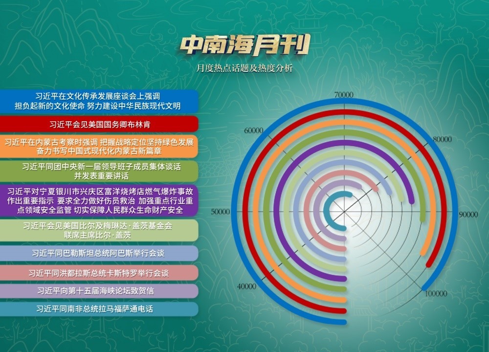 在央視網(wǎng)“智聞”系統(tǒng)提取分析的6月全網(wǎng)時政新聞熱點中,處處體現(xiàn)著“以古人之規(guī)矩,開自己之生面”的生動實踐。