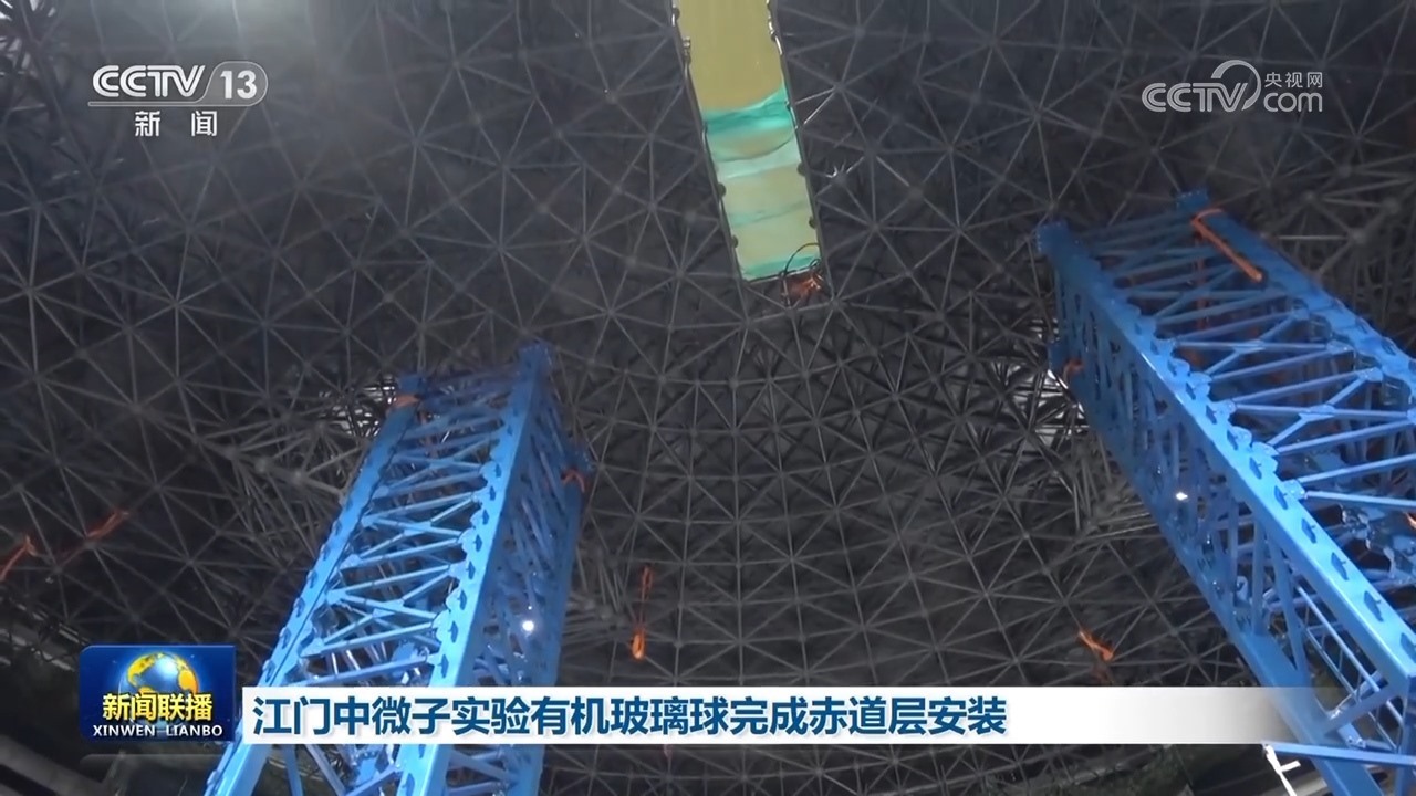 央視網(wǎng)消息(新聞聯(lián)播):大科學(xué)裝置江門中微子實(shí)驗(yàn)正在緊張建設(shè)中,位于地下700米的中心探測(cè)器日前完成了世界最大單體有機(jī)玻璃球赤道層的安裝,探測(cè)器整體工程過(guò)半。