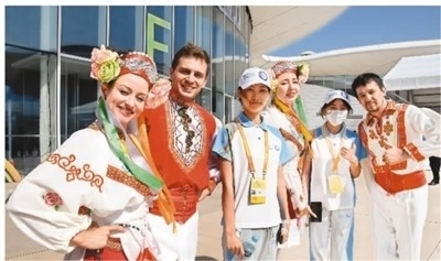 近日,上海合作組織國(guó)際投資貿(mào)易博覽會(huì)在青島舉行,促進(jìn)了國(guó)際間科技、經(jīng)濟(jì)和文化交流。圖為來(lái)自白俄羅斯的客人與博覽會(huì)志愿者合影。