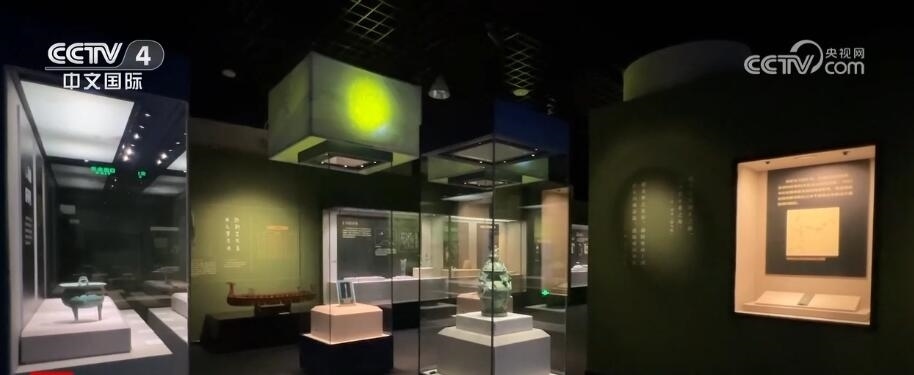 策展人 蔡亭亭:首先重磅的國寶級文物特別多,還有一個亮點是展廳中非常多的文物都體現(xiàn)了長江和海洋文明的互動和交融。