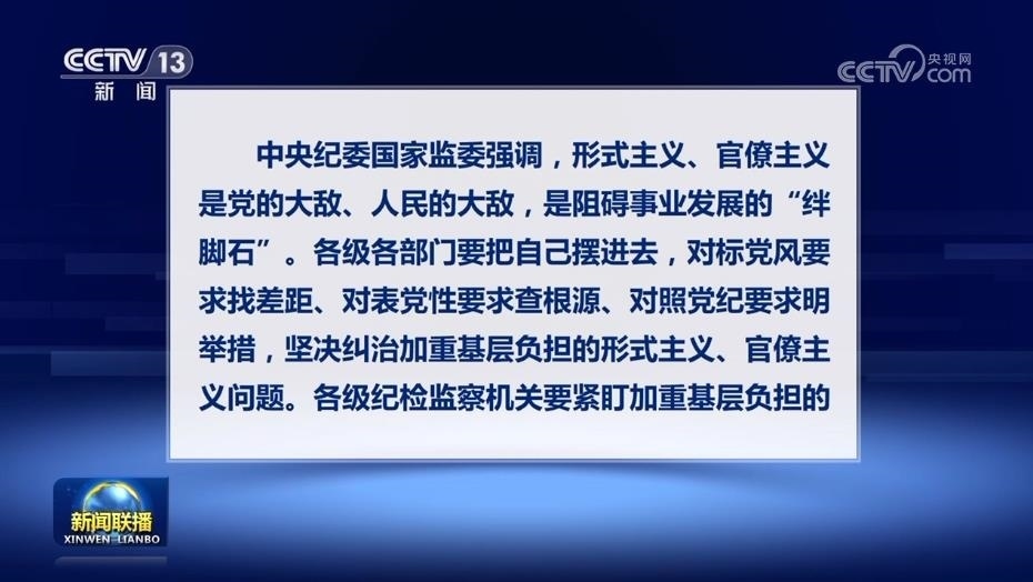 央視網(wǎng)消息(新聞聯(lián)播):二十屆中央紀(jì)委二次全會對加強作風(fēng)建設(shè)作出部署,強調(diào)要重點糾治形式主義、官僚主義。日前,中央紀(jì)委國家監(jiān)委對十起加重基層負(fù)擔(dān)的形式主義、官僚主義典型問題進(jìn)行公開通報。
