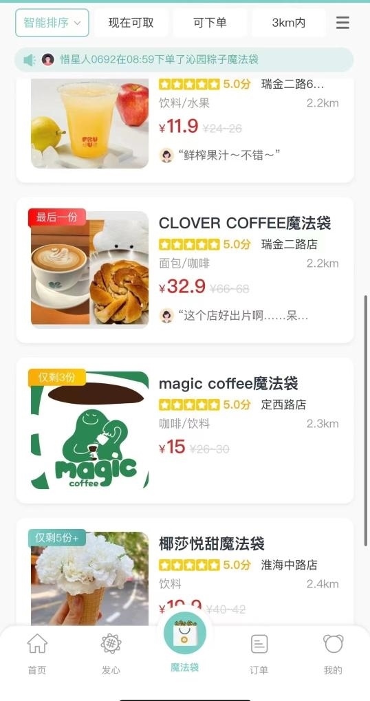 記者在上海登錄一個“盲盒”小程序,看到所在地周邊的部分商戶銷售一批名為“魔法袋”的產(chǎn)品,已經(jīng)吸引多個餐飲品牌加入。平均售價只有十幾元的“食物盲盒”,包含了多個烘焙產(chǎn)品。記者隨機選購了一款“魔法袋”,到店取貨后看到,售價11.9元的“魔法袋”里有4個蛋撻、2個肉松蛋糕。如果按照原價購買,這些東西應(yīng)該需要20多元。
