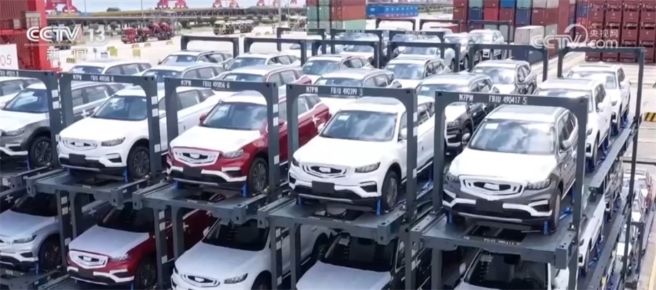 在太倉港汽車出口碼頭,一輛裝載了2797臺新能源車的船當(dāng)天將從太倉出發(fā)駛往南美。為了滿足新能源車的運輸功能,這艘船做了相應(yīng)改裝。艙內(nèi)配備紅外線溫度成像裝置和新能源車“一對一”實時溫度監(jiān)控系統(tǒng),一旦溫度過高就會開啟噴淋裝置。此外,為了滿足傳統(tǒng)汽車滾裝船運力不足的情況,太倉港和運輸企業(yè)還開發(fā)出了用定制集裝箱框裝載汽車,發(fā)揮集裝箱船的運力。根據(jù)統(tǒng)計,今年1—6月份,太倉港完成整車出口17萬輛,已經(jīng)超過去年全年的汽車出口量,其中,新能源車占比超過一半。
