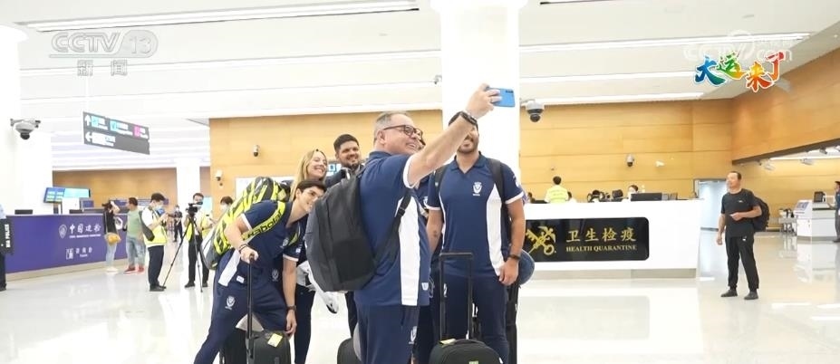 當(dāng)天抵達(dá)的巴西代表團(tuán)在機(jī)場完成海關(guān)衛(wèi)生檢疫及通關(guān)手續(xù)后,代表團(tuán)成員表示,很高興來到成都,希望打好比賽的同時也希望好好感受成都的美好生活。