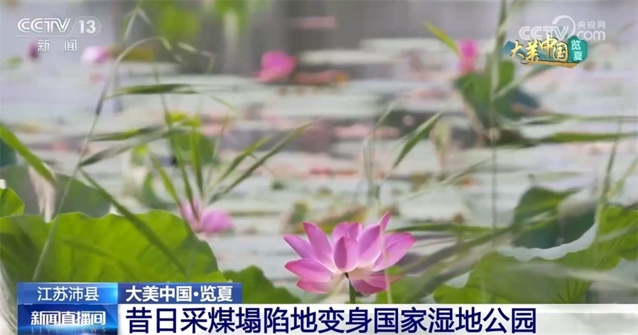 眼下,江蘇沛縣安國(guó)湖國(guó)家濕地公園的荷花次第綻放,從空中俯瞰,紅色的荷花點(diǎn)綴在綠色的荷葉之間,形成了一派美麗的夏日景色。安國(guó)湖國(guó)家濕地公園規(guī)劃建設(shè)面積517.06公頃,分為生態(tài)保育區(qū)、恢復(fù)重建區(qū)、合理利用區(qū)三大功能區(qū),其中濕地率達(dá)75.84%。據(jù)了解,十幾年前,這里還是一片采煤塌陷地。從2012年起,黃河故道沿線地區(qū)綜合開(kāi)發(fā)啟動(dòng),當(dāng)?shù)亻_(kāi)始建設(shè)濕地公園,通過(guò)地形重塑、水系貫通、生態(tài)駁岸修復(fù)、植被恢復(fù)等生態(tài)治理,目前這里已經(jīng)成為全國(guó)采煤塌陷地生態(tài)修復(fù)示范區(qū)。