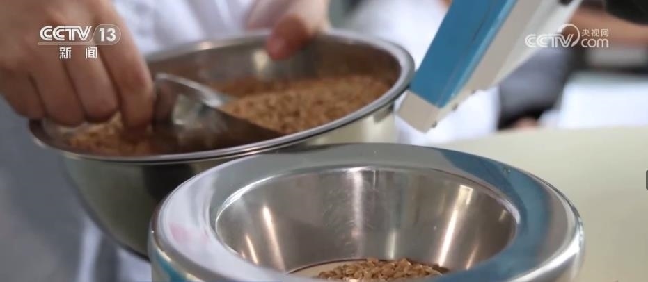 在山東夏津縣一家面粉加工企業(yè),工作人員正對2023年新收的小麥進行容重和蛋白質(zhì)含量檢測。結(jié)果顯示,與往年相比,這兩個指標(biāo)均有提升。