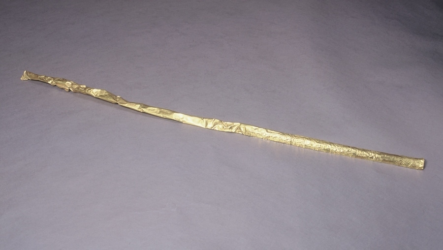 第三件是三星堆的金杖,它是古蜀國王權(quán)的象征。