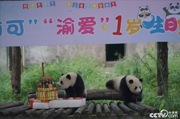 重慶:大熊貓“渝可”“渝愛(ài)”迎一周歲生日。