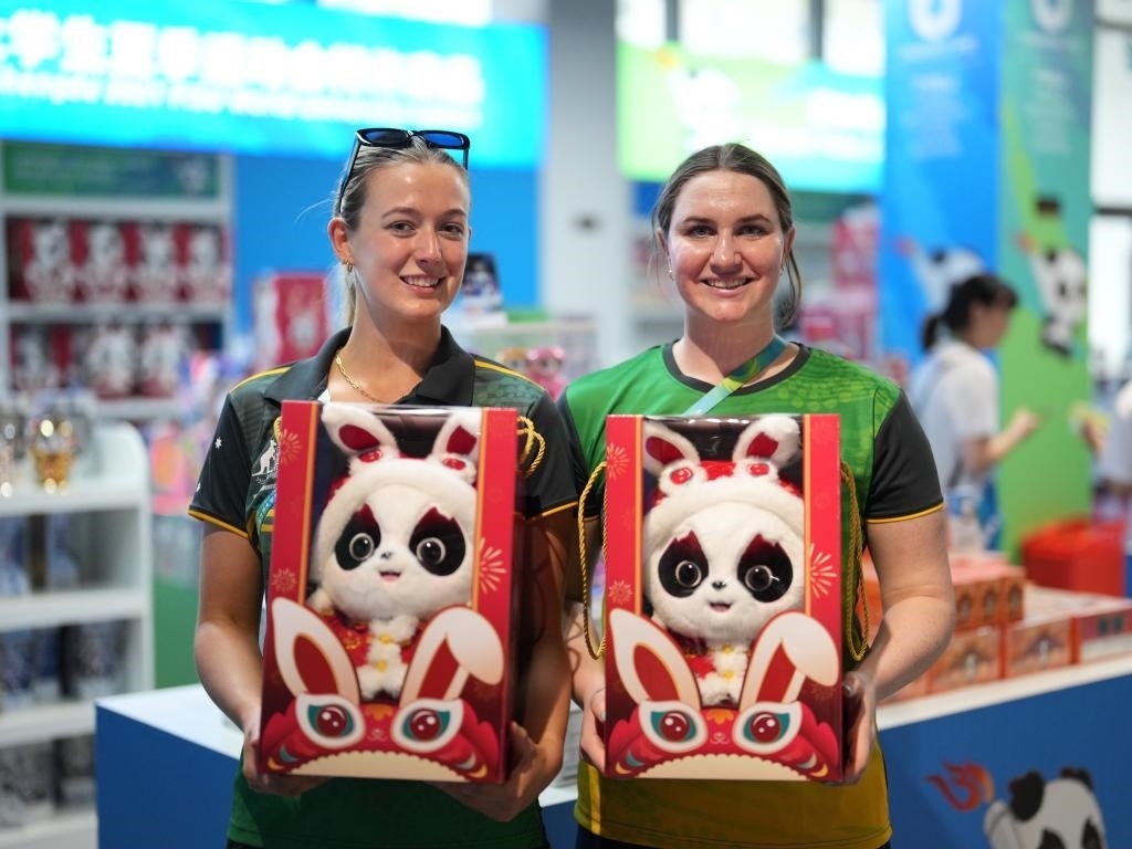 澳大利亞水球隊(duì)的露辛達(dá)·蘇珊和隊(duì)友逛了將近二十分鐘,最終選擇了戴著兔耳朵帽子的兔年版“蓉寶”,因?yàn)椤坝X(jué)得這個(gè)造型最可愛(ài)”,而當(dāng)大家給她解釋這個(gè)造型的來(lái)源時(shí)她才恍然大悟:“原來(lái)今年是中國(guó)的兔年?那我就知道為什么是這個(gè)造型了!”