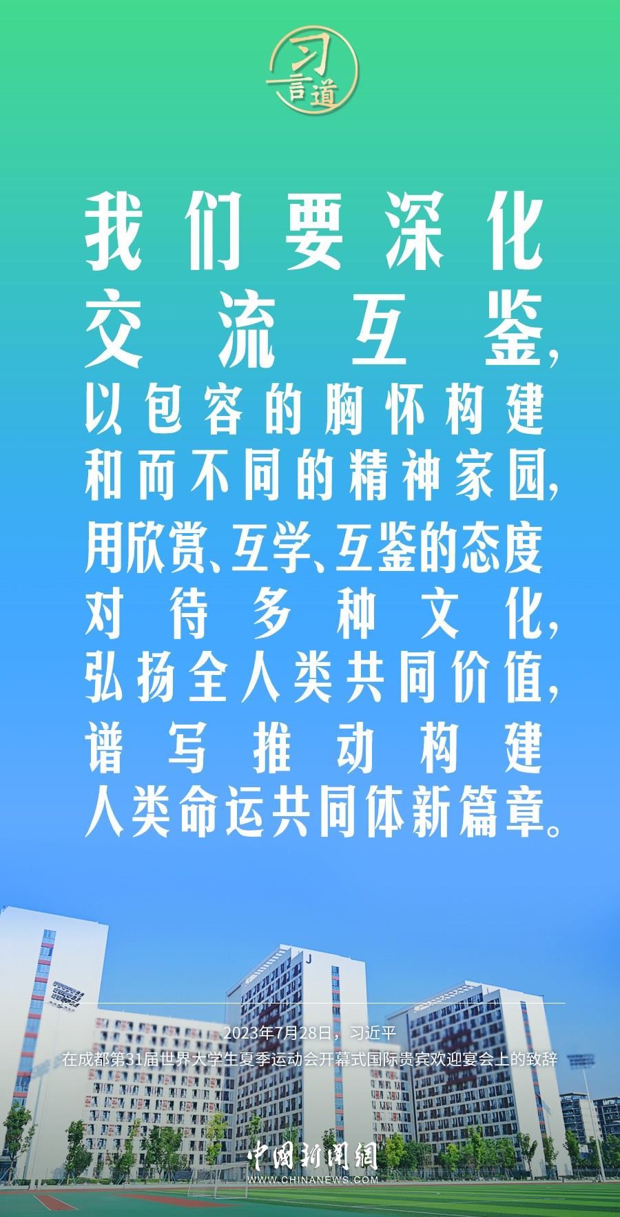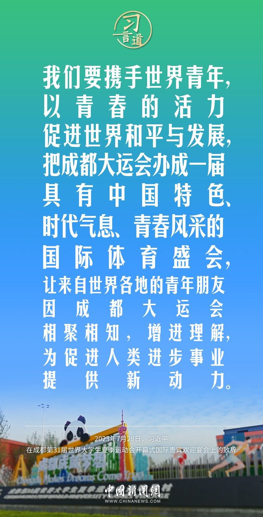 7月28日中午,國家主席習(xí)近平和夫人彭麗媛在四川省成都市金牛賓館舉行宴會(huì),歡迎出席成都第31屆世界大學(xué)生夏季運(yùn)動(dòng)會(huì)開幕式的國際貴賓。習(xí)近平發(fā)表致辭稱——