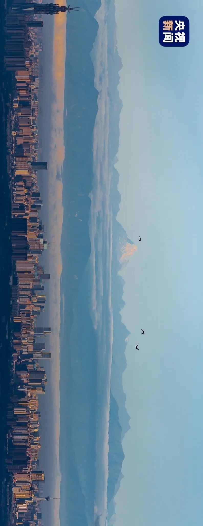△天朗氣清時,置身成都能與多座雪山同框:海拔7556米的“蜀山之王”貢嘎山、海拔6250米的四姑娘山幺妹峰、海拔5353米的成都境內第一高峰大雪塘。