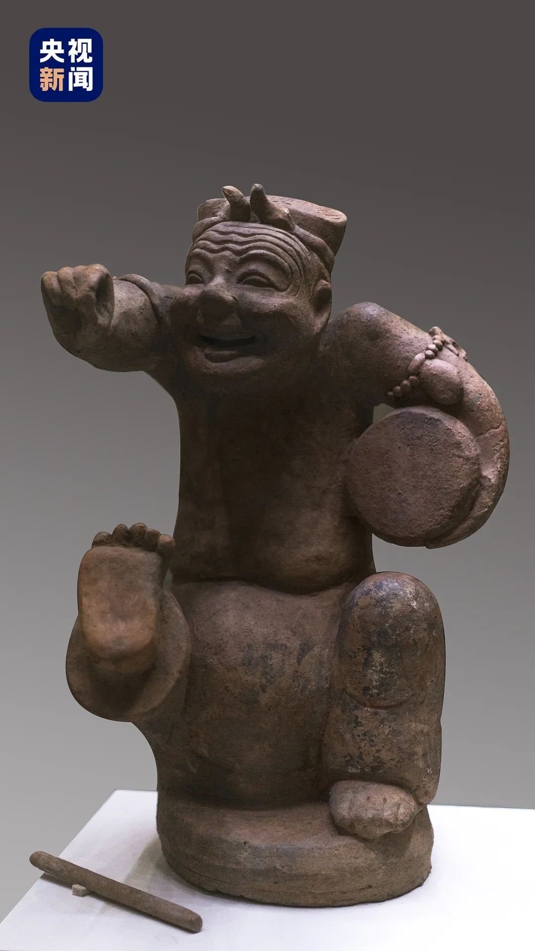 △東漢擊鼓說唱俑于1957年出土于成都市天回山東漢崖墓,現藏于中國國家博物館。