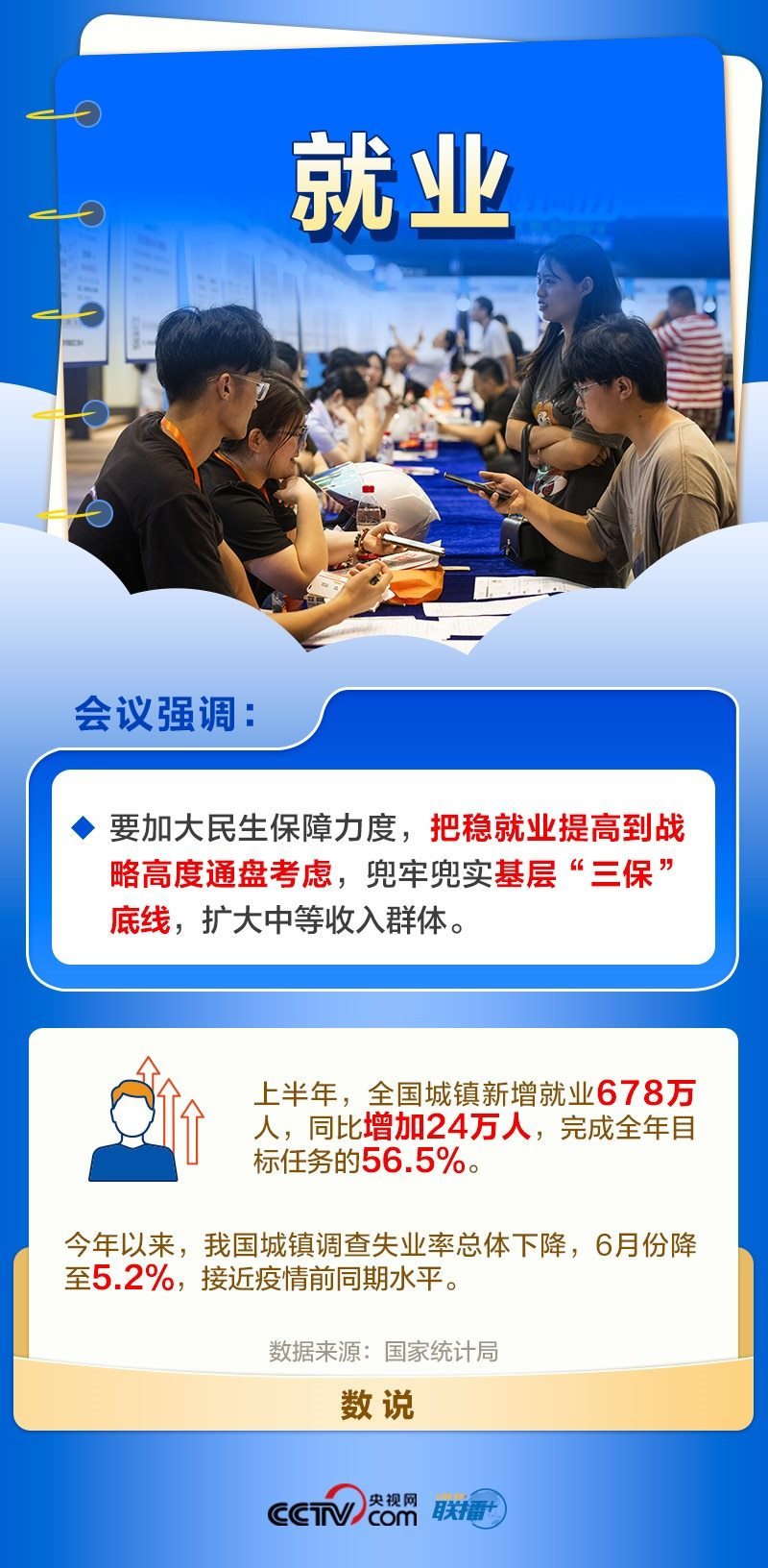 就業(yè)是最大的民生,也是最基本的民生。黨中央一直高度關(guān)注就業(yè)形勢。今年以來,各地區(qū)各部門多措并舉穩(wěn)存量、擴增量、提質(zhì)量、兜底線,落實落細就業(yè)優(yōu)先政策,完善公共就業(yè)服務(wù)。