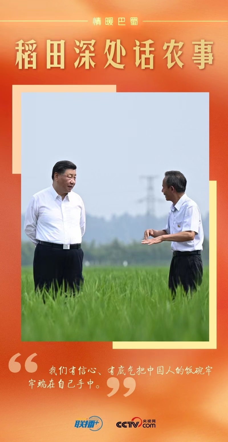遠(yuǎn)眺廣袤田野,總書記思慮深遠(yuǎn):“民以食為天。推進農(nóng)業(yè)現(xiàn)代化,既要靠我們中國的農(nóng)業(yè)專家,也要靠我們中國的農(nóng)民,我們有信心、有底氣實現(xiàn)糧食安全的目標(biāo)。四川要把農(nóng)業(yè)搞好,把糧食生產(chǎn)抓好?!?/p>