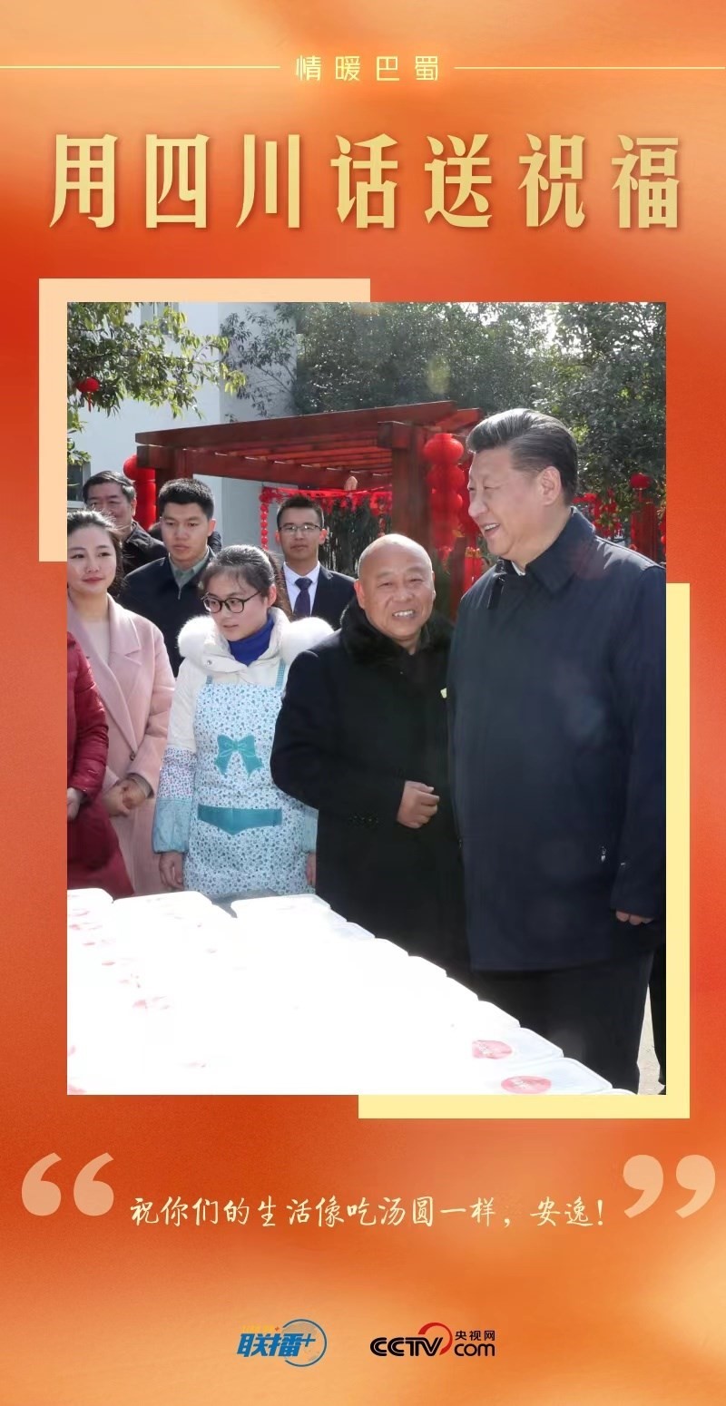 看到有村民在路邊包湯圓,總書記饒有興致地過去觀看,豎起拇指,用四川話對大家說:“祝你們的生活像吃湯圓一樣,安逸!”