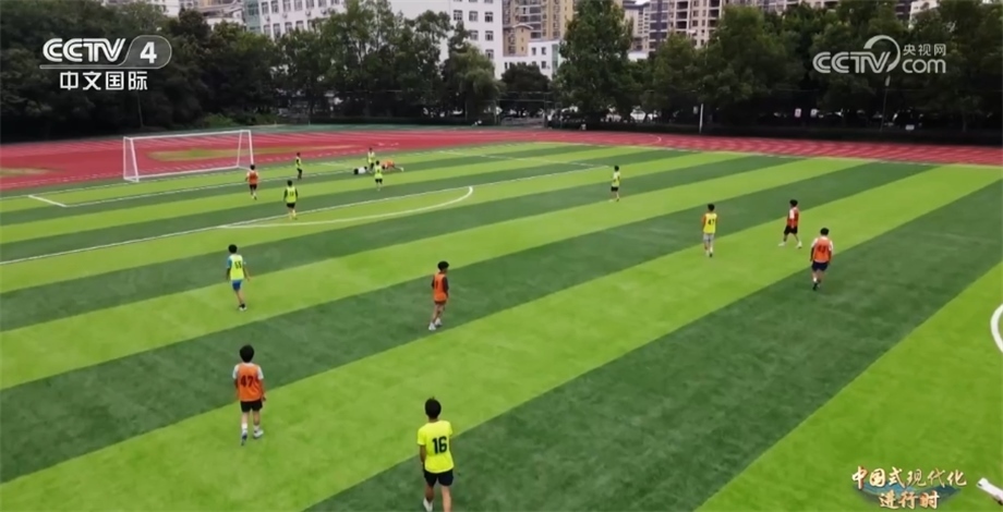 總臺央視記者 駱魏:在這個(gè)舉辦“村超”的球場,每周五、六、日都會進(jìn)行多場足球比賽,而在其他時(shí)間,這里也同樣熱鬧。我們看到有在球場上練球的大人小孩,也有現(xiàn)場駐場歌手的表演吸引了大量合唱的觀眾,還有熱熱鬧鬧跳著廣場舞的當(dāng)?shù)厝罕姟!按宄本蹟n了人氣,為這里注入了活力。