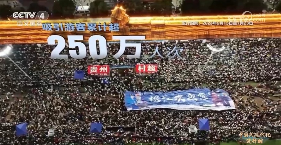 在貴州省黔東南州榕江縣的這個(gè)夏天,一場村民自發(fā)組織的“村超”鄉(xiāng)村足球聯(lián)賽正在火熱進(jìn)行著,歡呼聲響徹球場,五萬人體育場座無虛席。