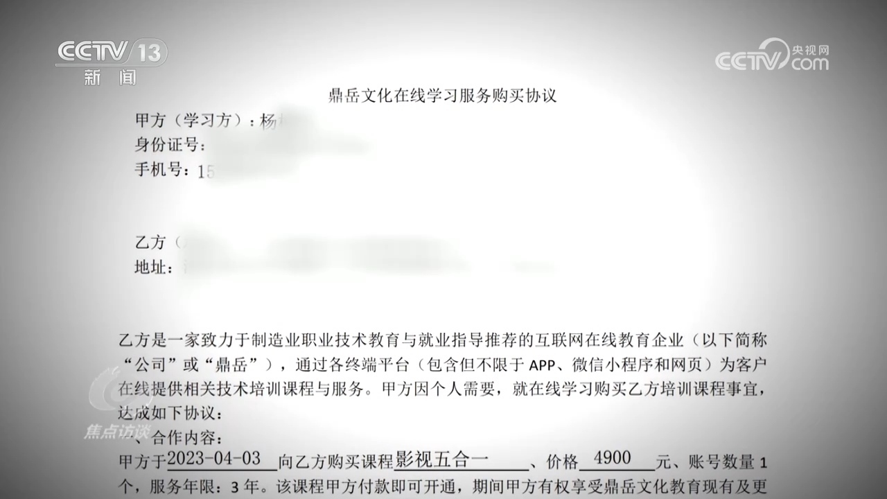 然而,這次鼎岳公司的工作人員也沒再用推薦兼職來安撫他,而是直接拿出了培訓合同,上面寫著“自用戶繳費兩個月后,鼎岳將不再為用戶提供退費服務?!笨粗@份自己簽了字的培訓合同,小楊意識到退費難了。
