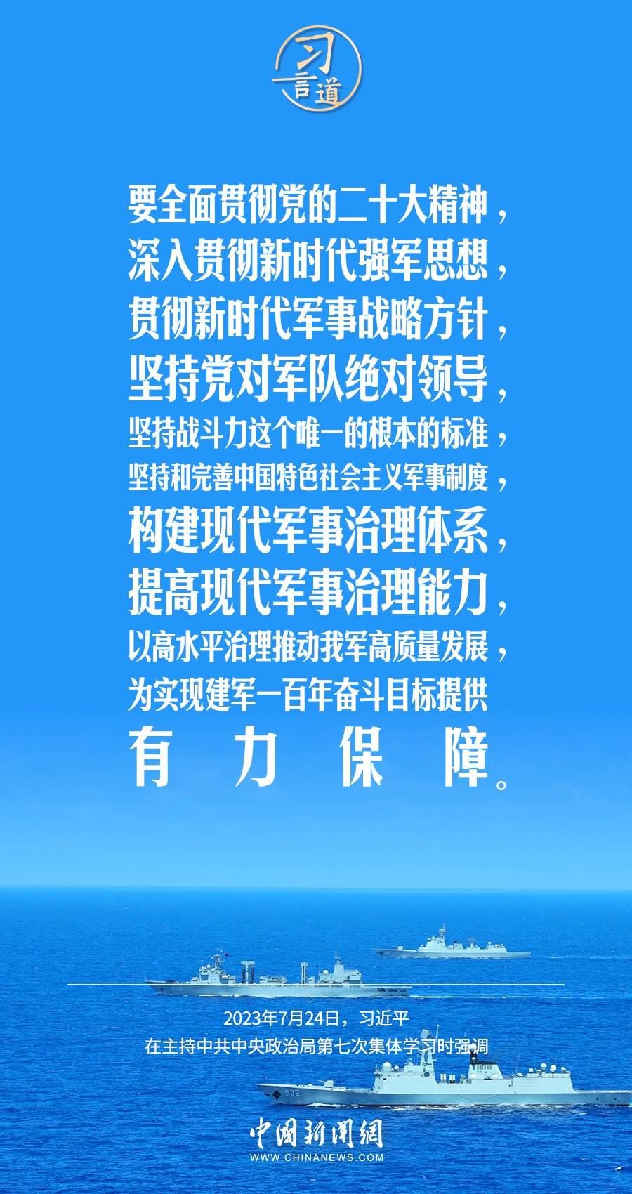八一建軍節(jié)來(lái)臨之際,中共中央政治局7月24日下午就全面加強(qiáng)軍事治理進(jìn)行第七次集體學(xué)習(xí)。中共中央總書(shū)記習(xí)近平主持學(xué)習(xí),他強(qiáng)調(diào)——