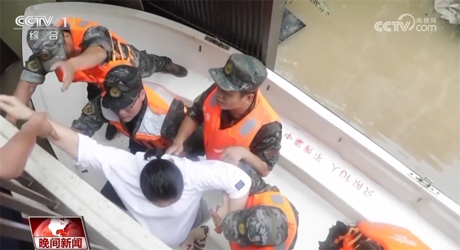 最終,官兵們用沖鋒舟撞開(kāi)大門(mén)擠進(jìn)小區(qū),隨后爬上孕婦所在居民樓的二樓護(hù)欄進(jìn)入樓內(nèi),在14樓發(fā)現(xiàn)受困孕婦。為了保證孕婦的安全轉(zhuǎn)移,樓上的官兵小心攙扶孕婦翻過(guò)欄桿,官兵們搭成人梯,用自己的肩膀托住孕婦的雙腳,穩(wěn)穩(wěn)地把她轉(zhuǎn)移到?jīng)_鋒舟上。