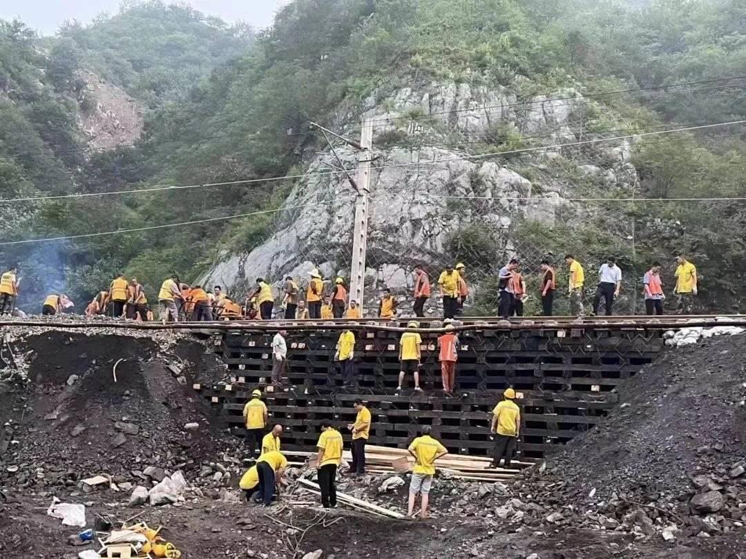救援物資專(zhuān)列一邊清理線路