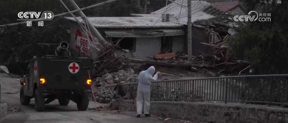 在北京門頭溝區(qū)王平鎮(zhèn),中部戰(zhàn)區(qū)疾控中心加大環(huán)境消殺工作力度,從8月6日下午開始分赴東石古巖村和東馬各莊村,展開環(huán)境處置工作。由于道路中斷,防疫隊員穿著防護服,徒步6公里趕赴任務(wù)點位。目前,已累計完成消殺面積近10萬平方米。