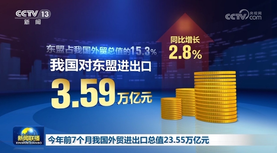 前7個月,我國對第一大貿(mào)易伙伴東盟進(jìn)出口3.59萬億元,同比增長2.8%。對中亞五國進(jìn)出口3316.9億元,同比增長35%。對拉丁美洲、非洲分別進(jìn)出口1.92萬億元和1.14萬億元,同比分別增長5.5%和7.4%。