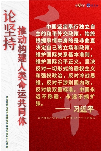 當(dāng)前,世界之變、時代之變、歷史之變正以前所未有的方式展開。人類社會面臨前所未有的挑戰(zhàn)。世界又一次站在歷史的十字路口,何去何從取決于各國人民的抉擇。中國始終堅(jiān)持維護(hù)世界和平、促進(jìn)共同發(fā)展的外交政策宗旨,致力于推動構(gòu)建人類命運(yùn)共同體。