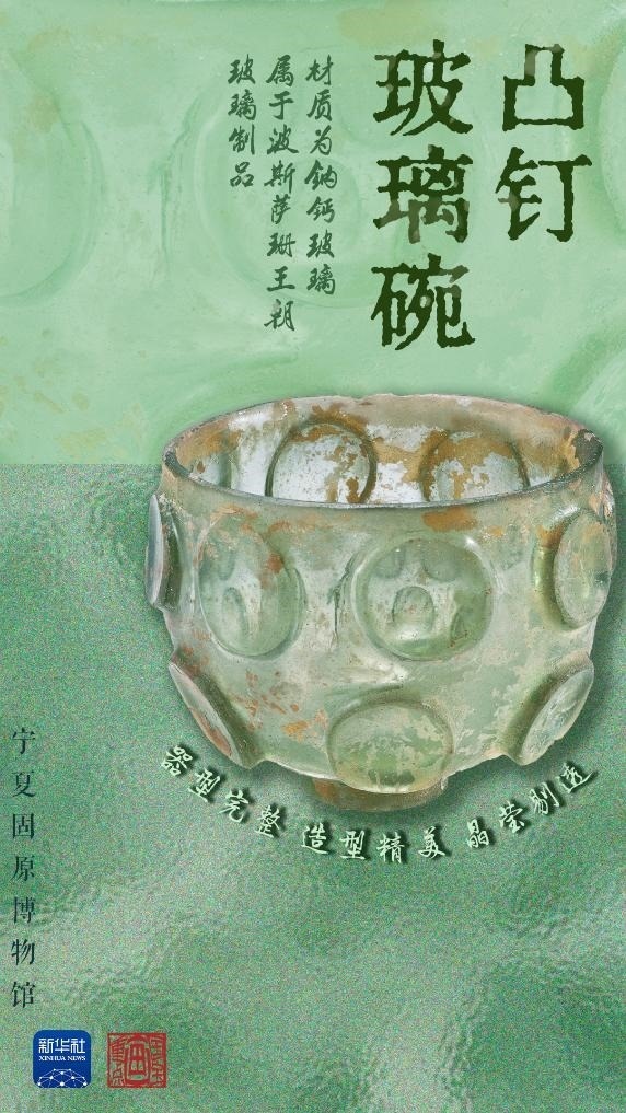 不同于我國古代的鉛鋇玻璃,這件出土于寧夏固原的凸釘玻璃碗的材質(zhì)是鈉鈣玻璃,是經(jīng)絲綢之路遠道而來的“進口貨”——波斯薩珊王朝玻璃制品。據(jù)張強介紹,這只玻璃碗體現(xiàn)了薩珊玻璃器形和紋飾上的獨特風格以及精湛的磨琢工藝,是我國出土的薩珊玻璃器的代表,說明當時西方玻璃器經(jīng)絲綢之路輸入中國,也反映出固原作為絲綢之路東段北道的必經(jīng)之地,在當時國際商業(yè)貿(mào)易和文化傳播中的重要地位。
