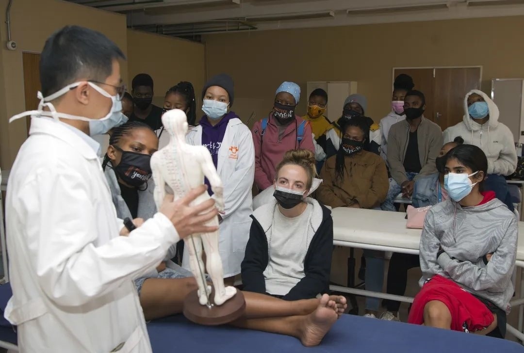 胡紫景在南非約翰內斯堡大學上針灸課。(受訪者供圖)