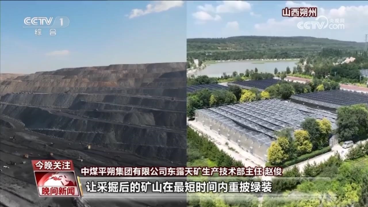 盛夏時節(jié),走進山西平朔礦區(qū),通過把復(fù)墾土地與光伏發(fā)電結(jié)合起來,“架上發(fā)電、架下牧草”的生態(tài)美景重現(xiàn)。萬畝林地、草地與藍色“光伏海洋”交相輝映。